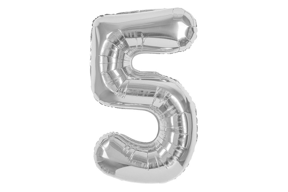 Шар (40''/102 см) Цифра, 5, Серебро, 1 шт. в уп.