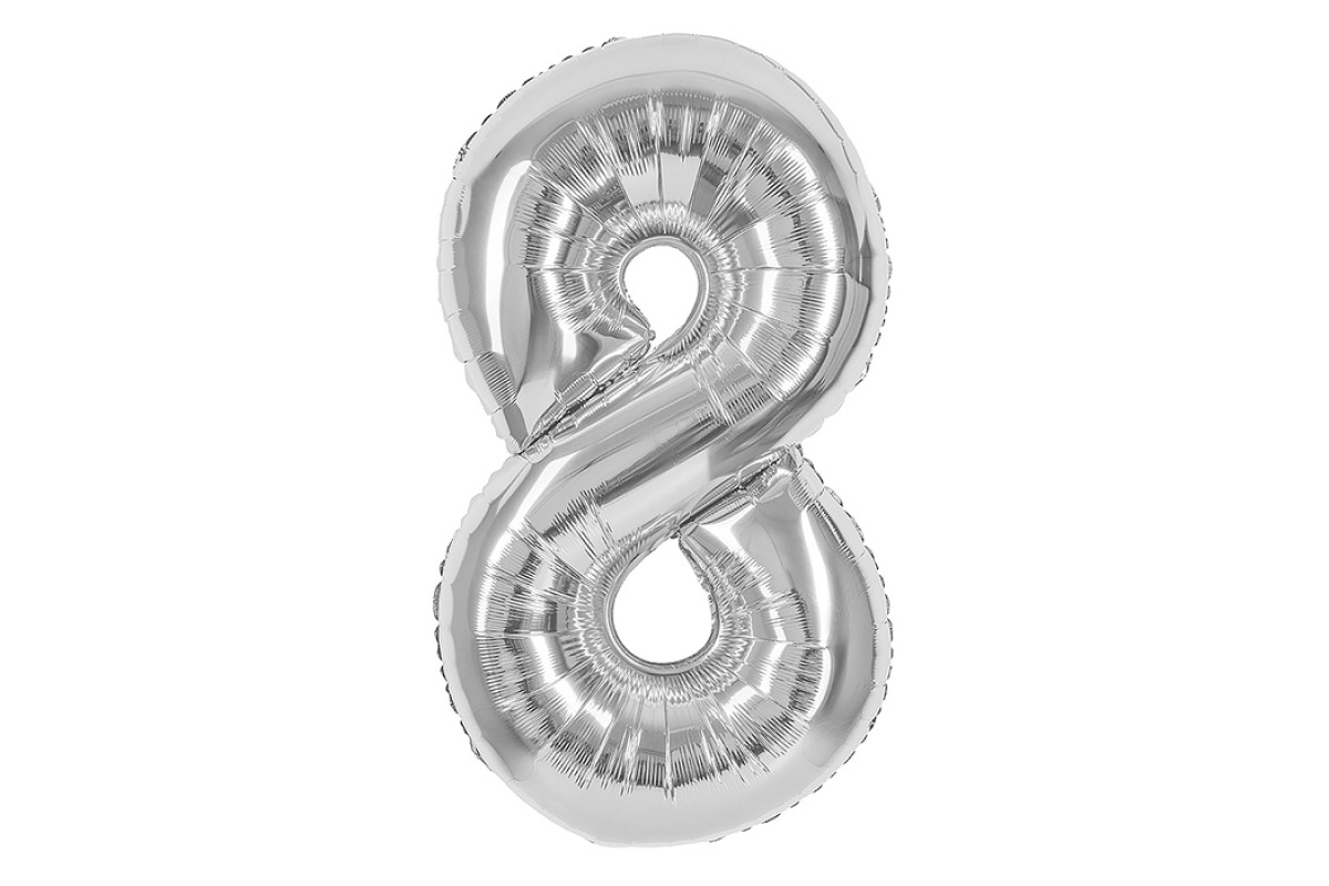Шар (40''/102 см) Цифра, 8, Серебро, 1 шт. в уп.