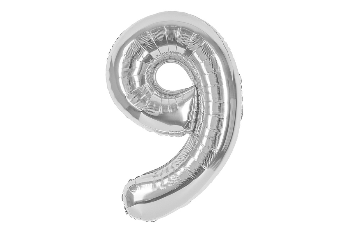 Шар (40''/102 см) Цифра, 9, Серебро, 1 шт. в уп.