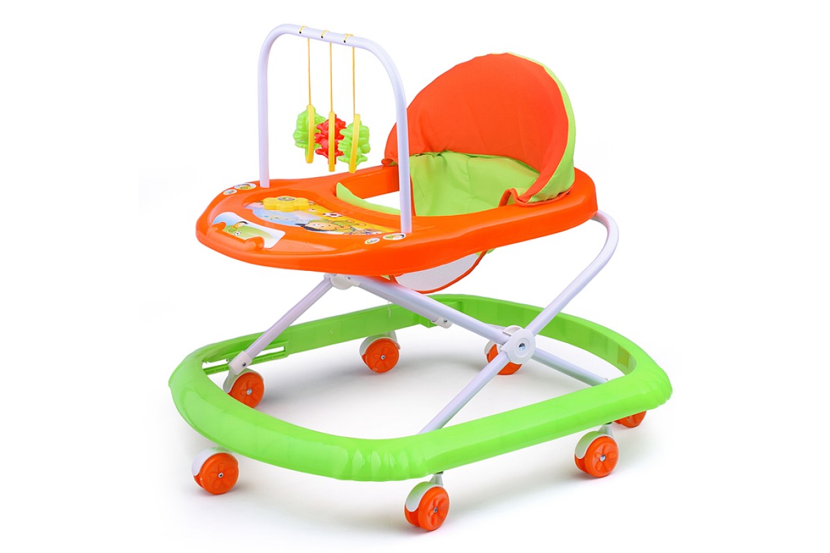 Ходунки с подвесными игрушками и музыкальным цветком (оранжевый-зеленый) пакете