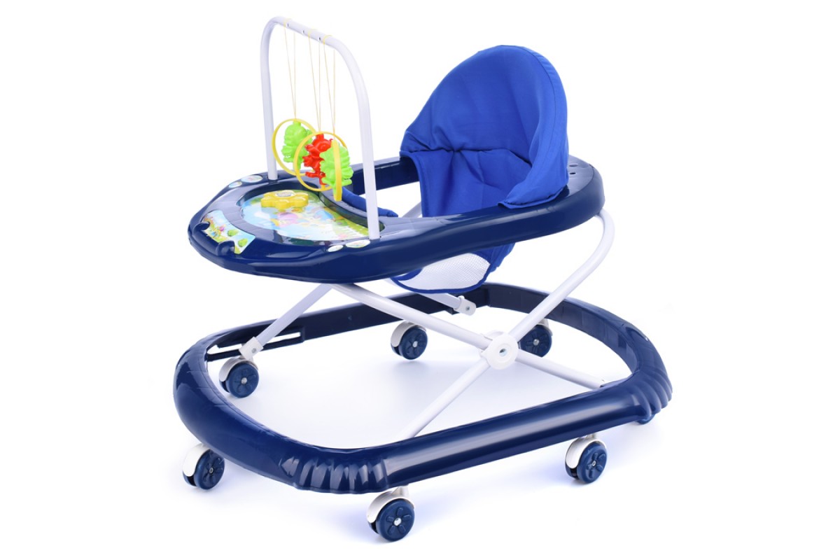Ходунки с подвесными игрушками и музыкальным цветком (синий) в пакете