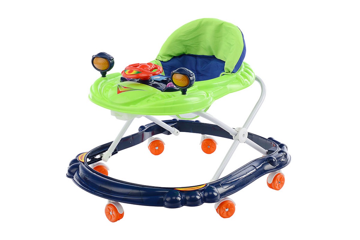 Ходунки с рулем (свет,звук) синий-зеленый, в пакете