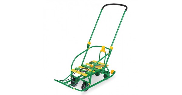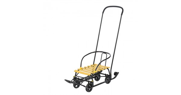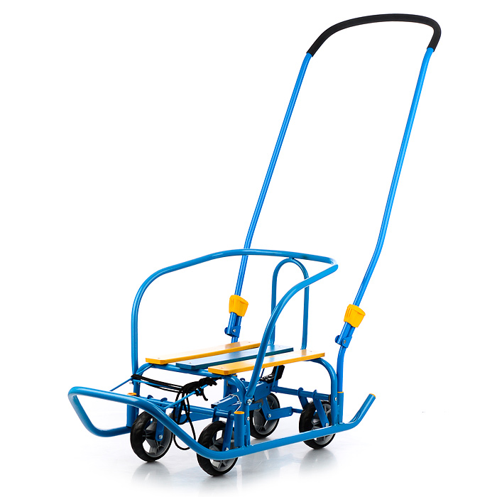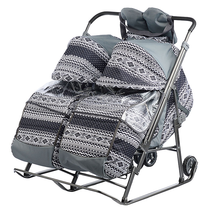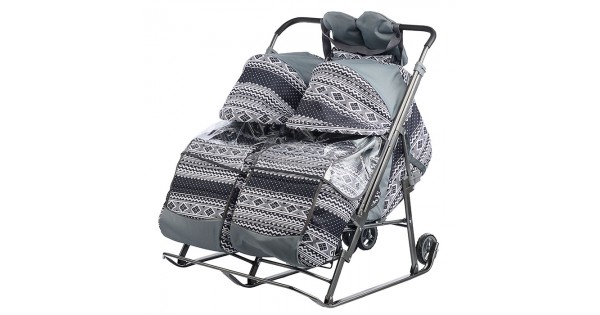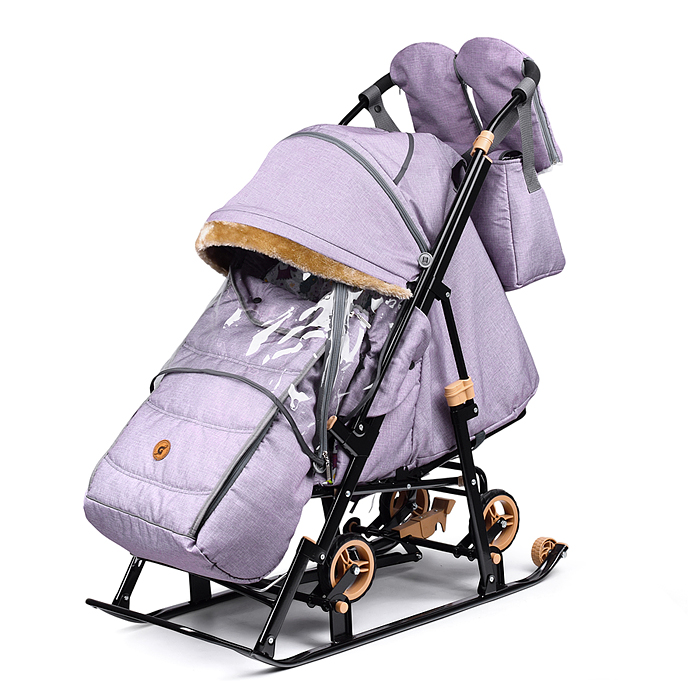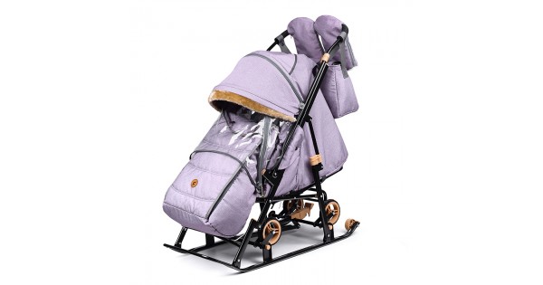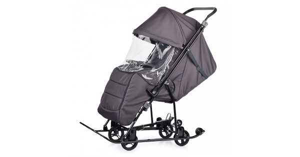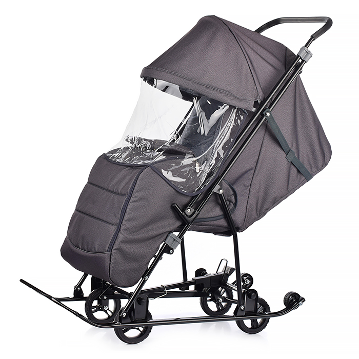 Санки-коляска "Glory gloss" (сатин серо-коричневый) +светоотражающая