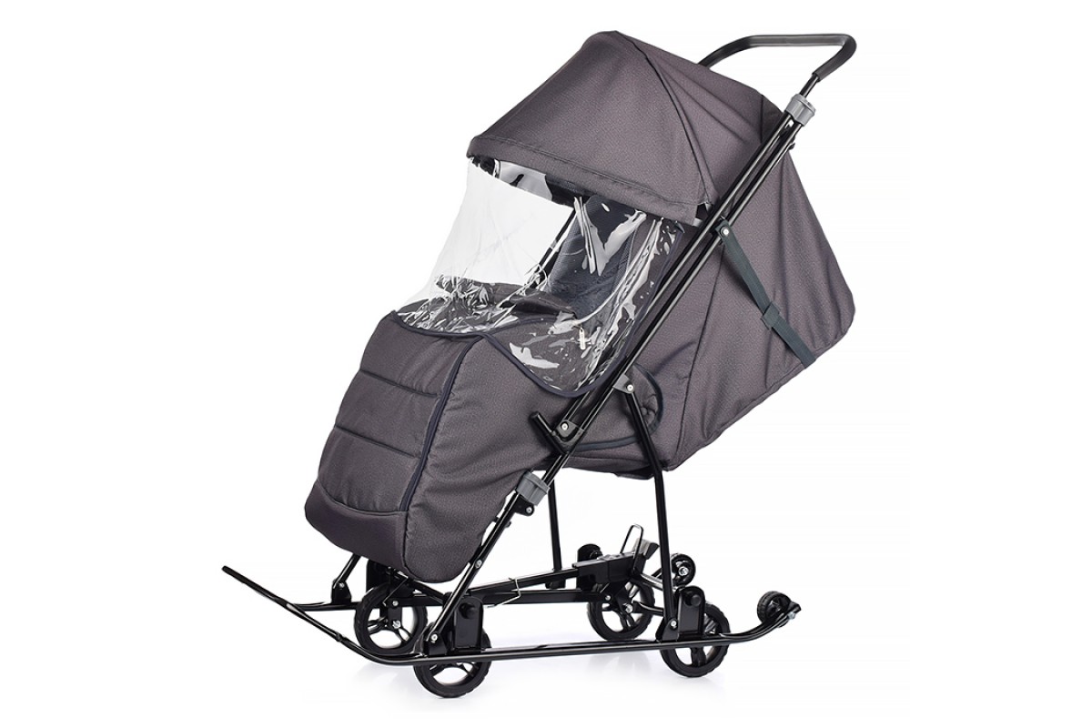 - высота до сиденья - 400 мм (на колёсах)/340 мм (на лыжах)