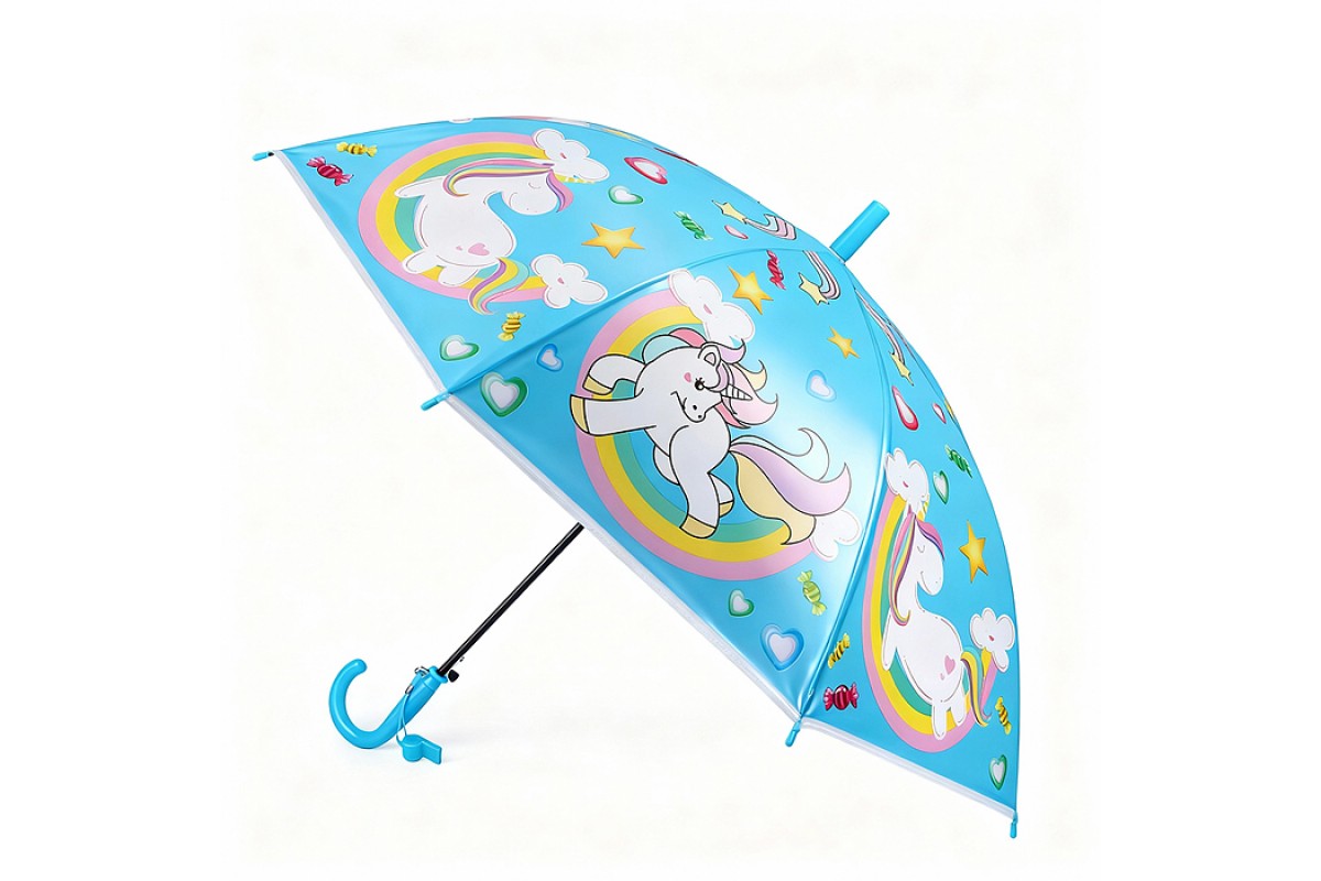 Зонт детский "Радужная единорожка" (цвет голубой) (50см.)