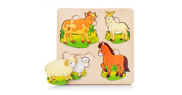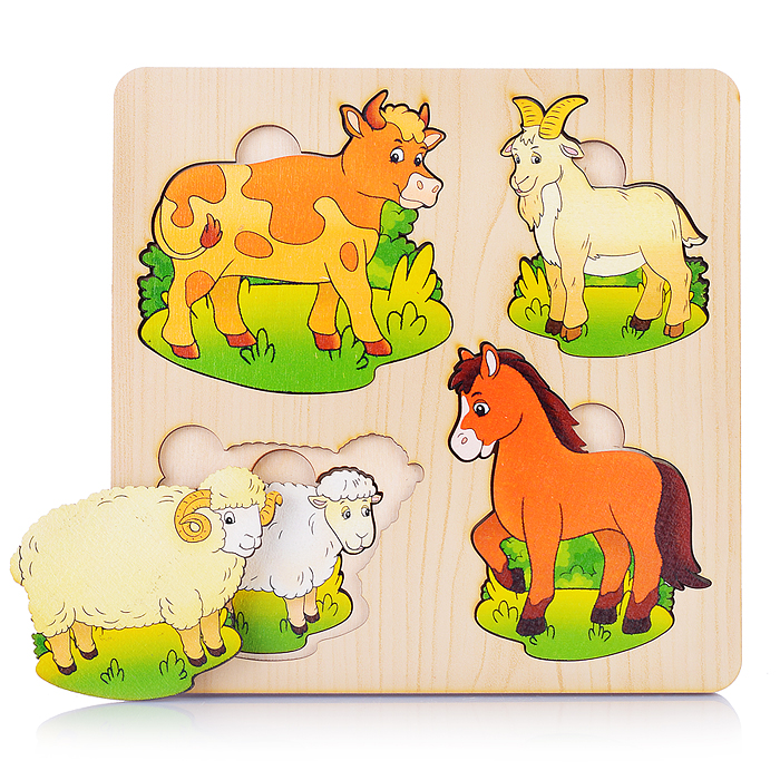Больше-меньше "Домашние животные" развивающая доска (дерево) /18,5*18,5 см
