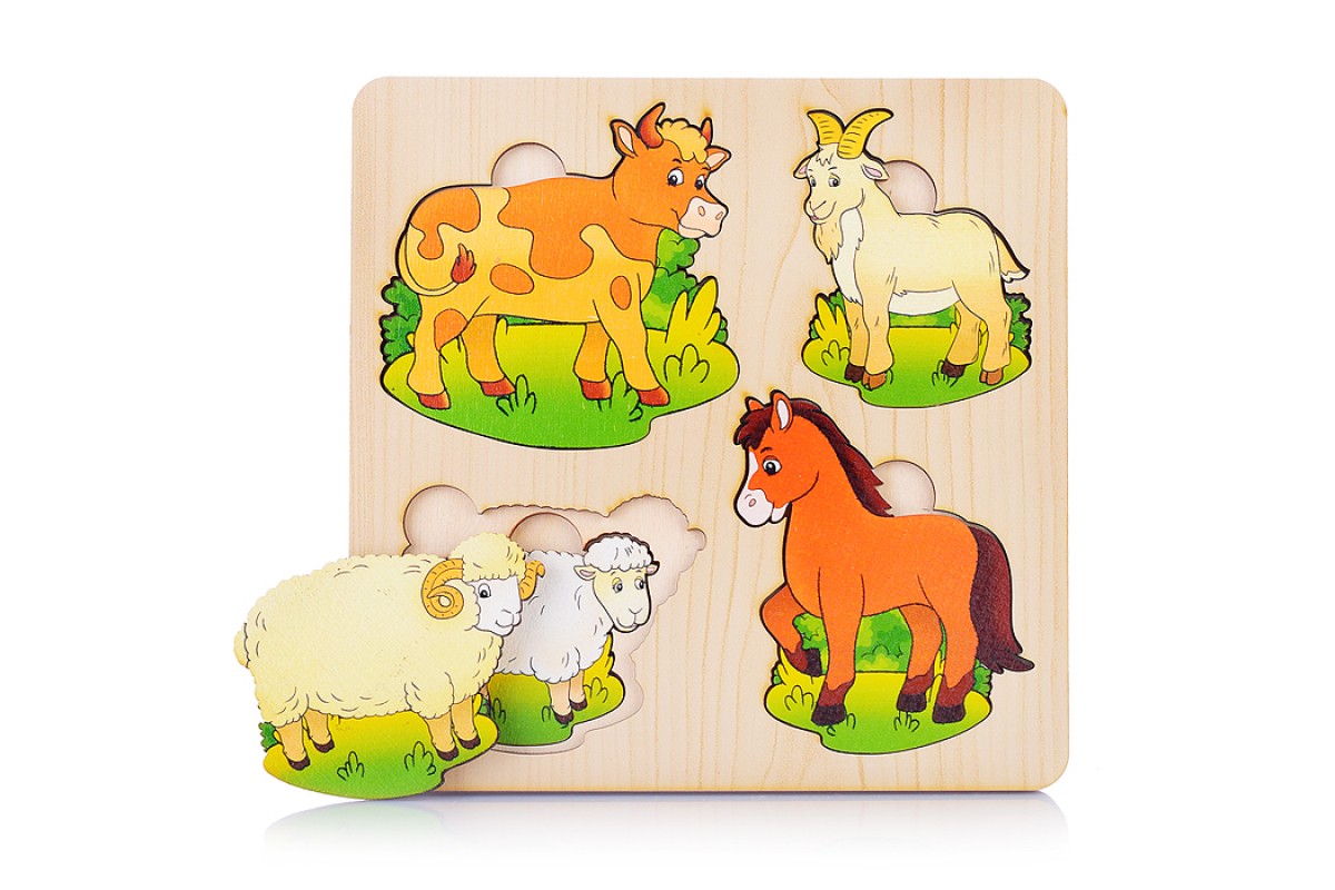 Больше-меньше "Домашние животные" развивающая доска (дерево) /18,5*18,5 см