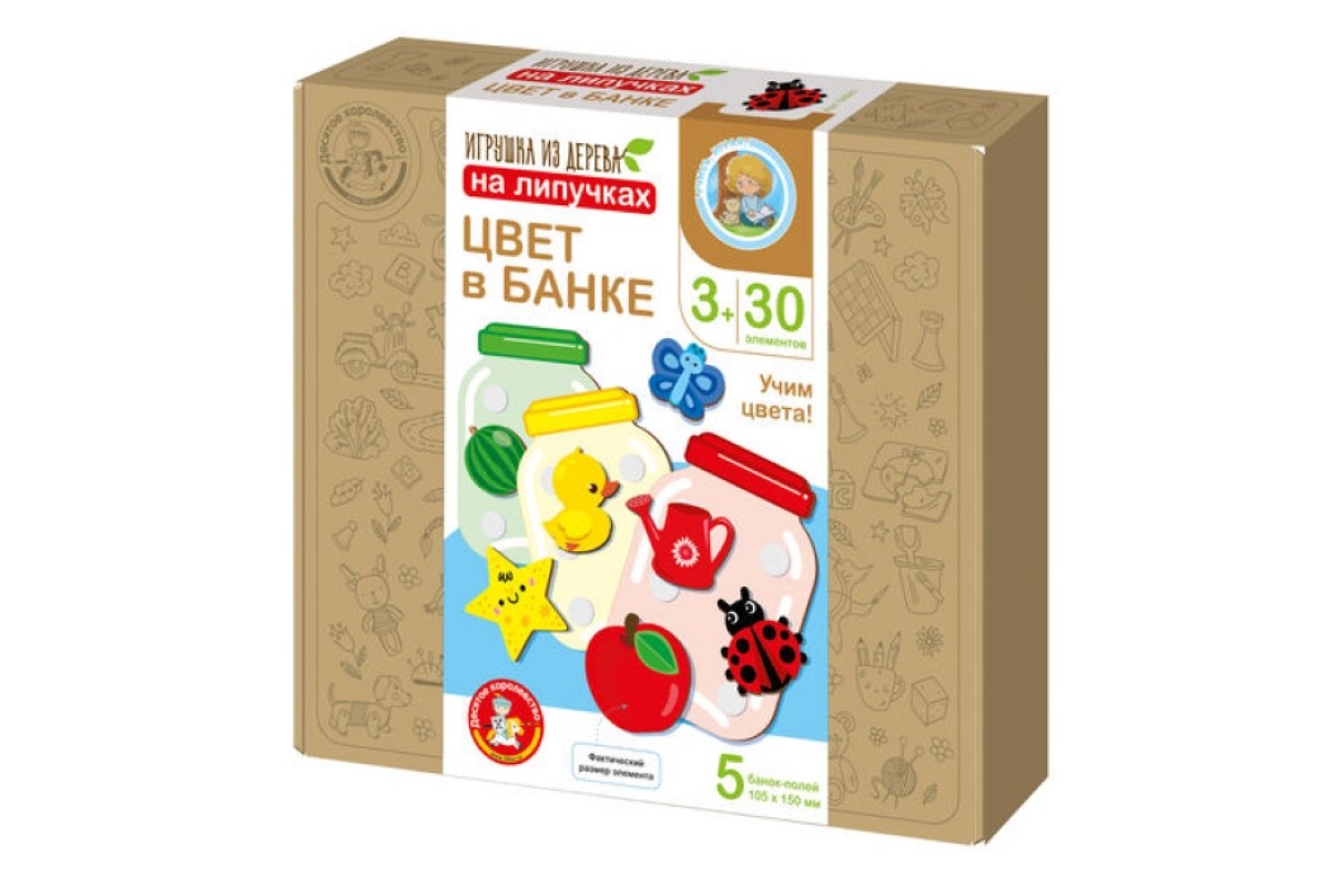 Игра развивающая из дерева на липучках "Цвет в банке"