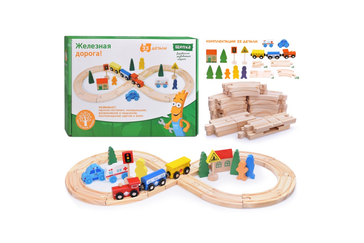 Трек с паровозом и фигурками в коробке