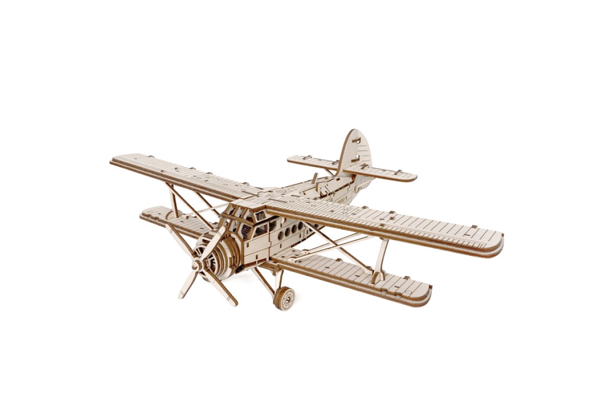 У собранной модели вращаются колеса, воздушный винт на резиномоторе. Двигаются закрылки, элерон, руль направления, руль высоты.