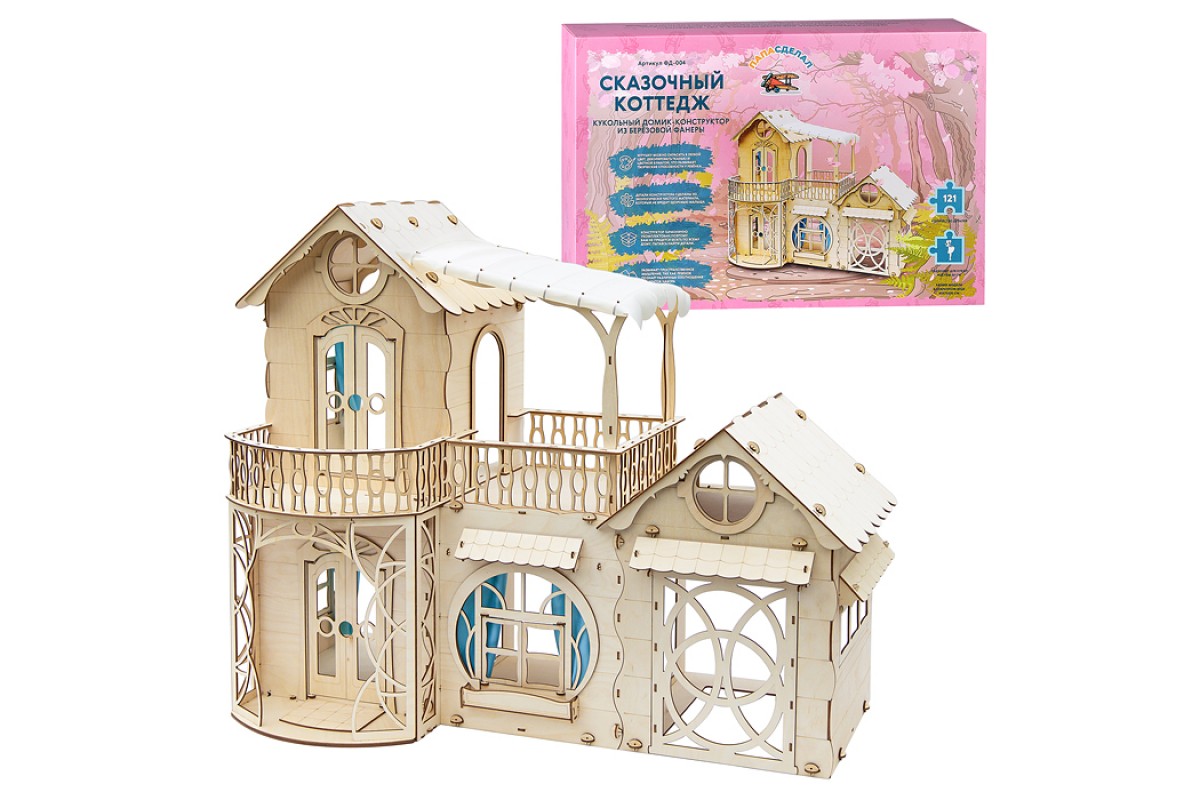 Высота кукол и мульт-героев может достигать от 10 до 29 см. Конструктор собирается очень легко и быстро, с использованием клея для крепления декоративных элементов входящих в набор. Домик можно декорировать цветной бумагой, акриловой краской. Наш конструктор позволит развить мелкую моторику, воображение и память ребёнка, а также станет прекрасным подарком.