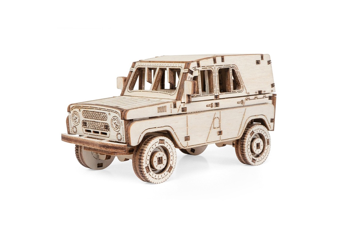 Габаритные размеры: 110 х 50 х 55 мм. У собранной модели вращаются колеса.