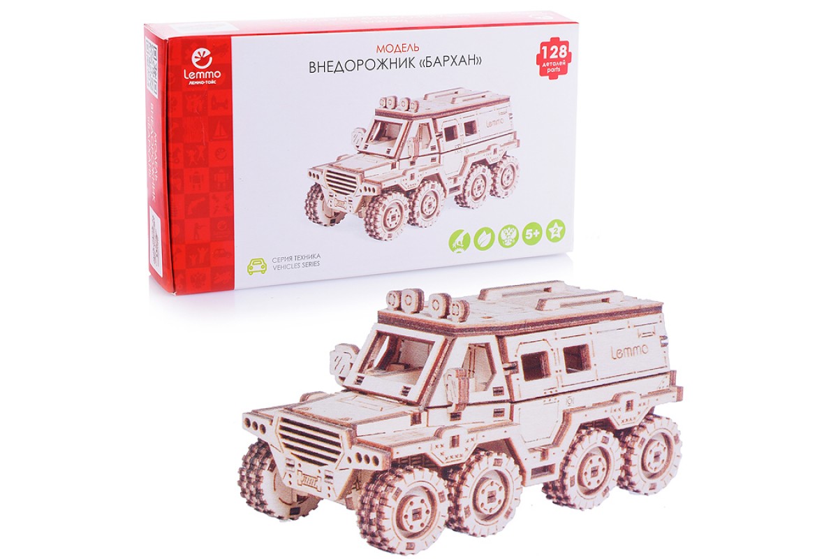Все детали выполнены из качественной древесины и имеют сильный насыщенный запах дерева. Готовы к сборке. Детали находятся на специальных плашках и необходимо только выдавить пальцем нужную деталь.