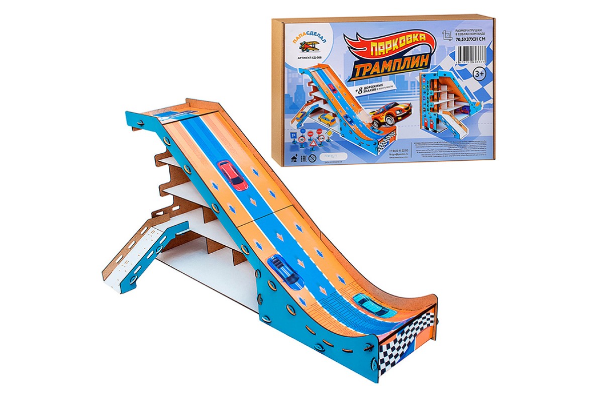 - парковка оснащена пандусом для заезда машин и трамплином.