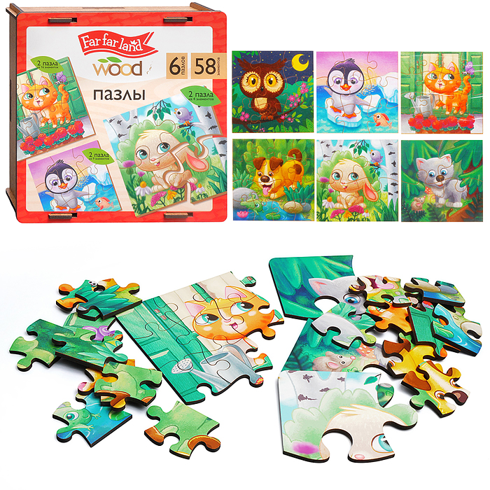 Пазлы и вкладыши яркие красочные из дерева, разных форм и уровней сложности, собраны в данной категории. Доставка, как почтой России, так и транспортной компанией, по согласованию.