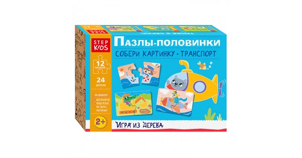 Игра из дерева "Пазлы-половинки: Собери картинку. Транспорт" (Step Kids)
