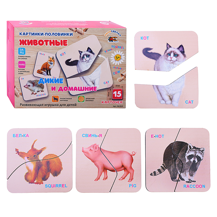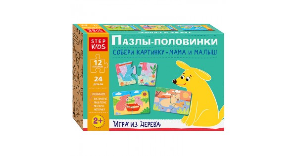 Игра из дерева "Пазлы-половинки: Собери картинку. Мама и малыш" (Step Kids)