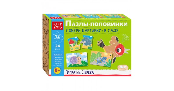 Игра из дерева "Пазлы-половинки: Собери картинку. В саду" (Step Kids)
