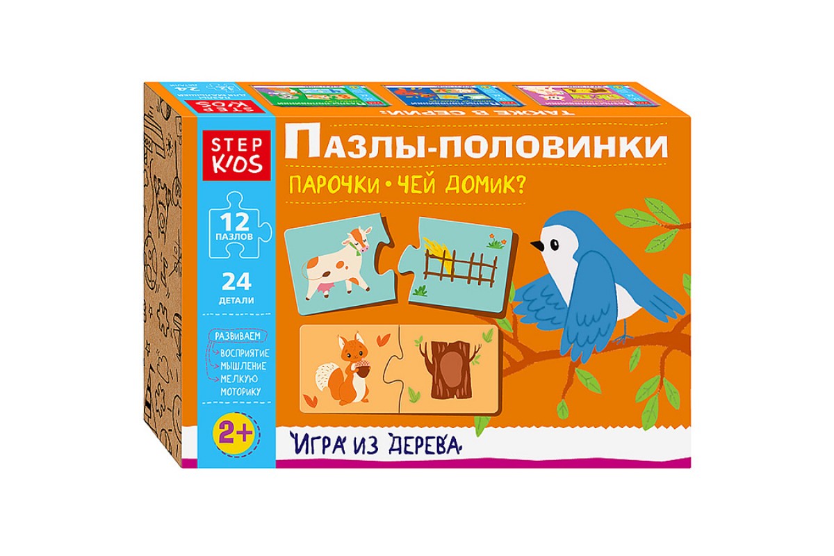 Игра из дерева "Пазлы-половинки: Парочки. Чей домик?" (Step Kids)