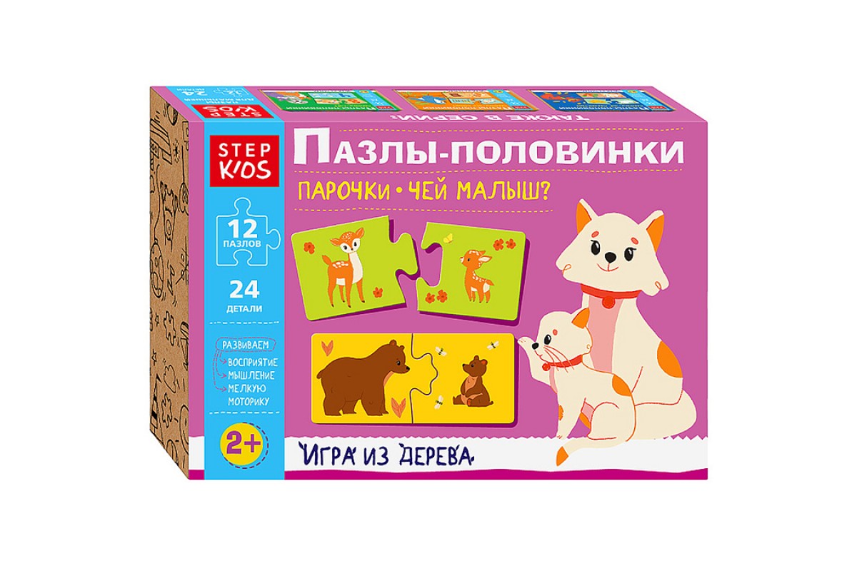 Игра из дерева "Пазлы-половинки: Парочки. Чей малыш?" (Step Kids)