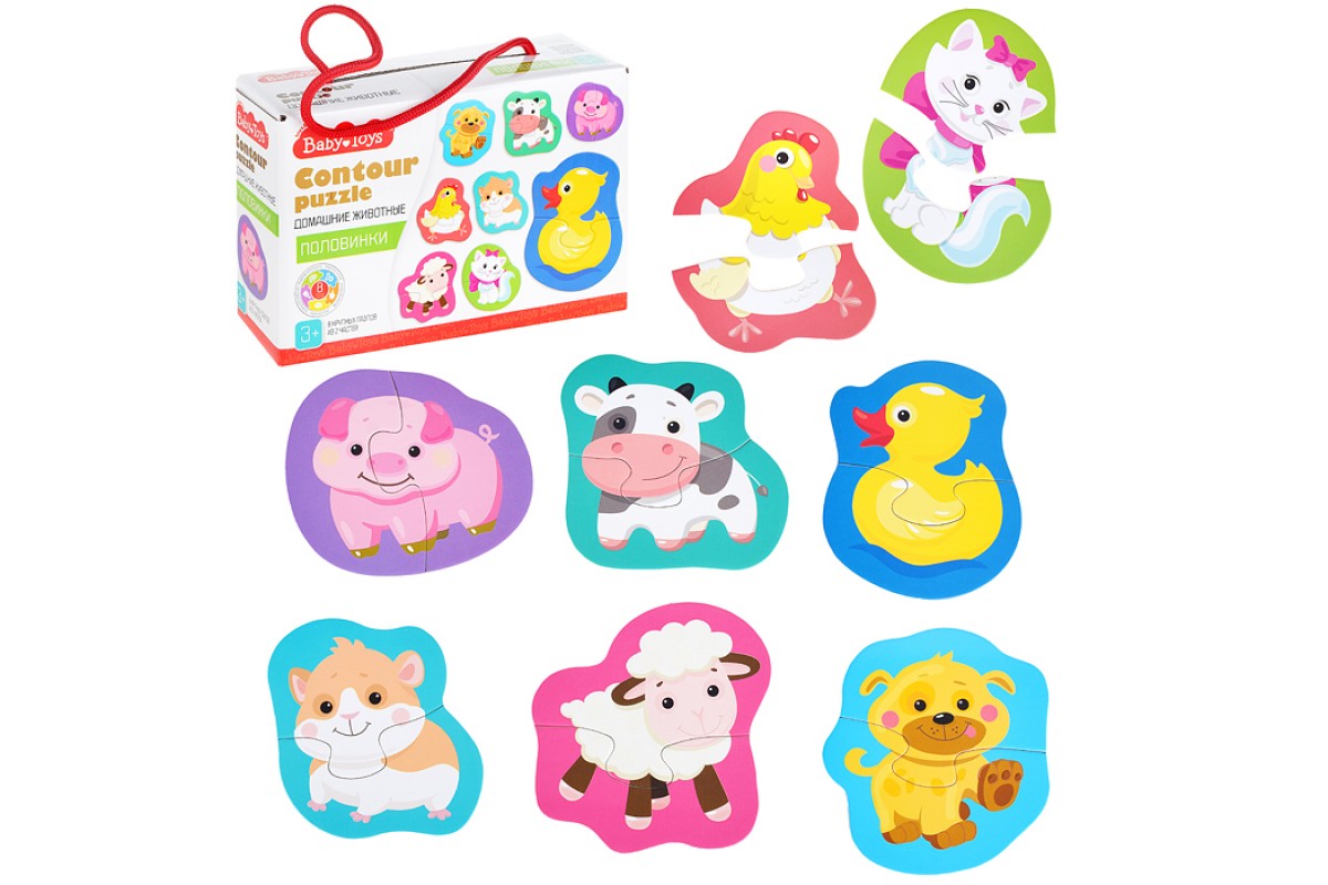 Пазлы контурные Половинки "Домашние животные" Baby Toys