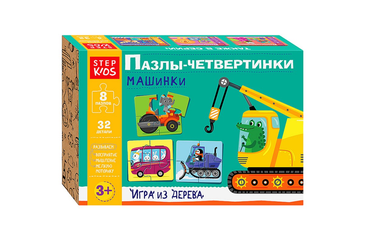 Развивающая игра "Машинки. Пазлы-четвертинки" (Step Kids)