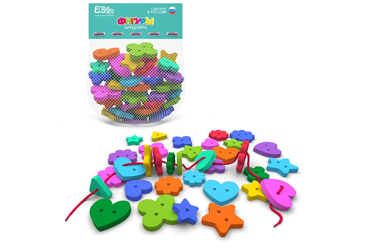 В наборе Шнуровка-россыпь собраны разные цветочки, разных цветов. Детали игрушки имеют крупное отверстие по центру каждой фигурки для нанизывания на шнуровку. Игра подходит для деток разного возраста.