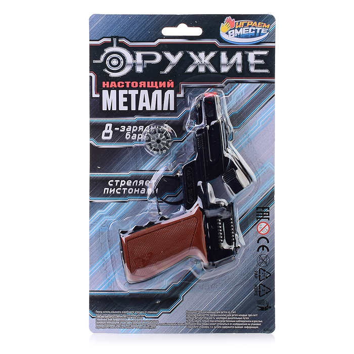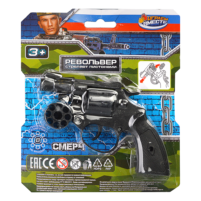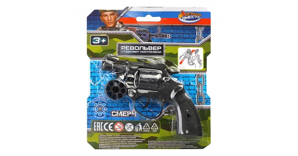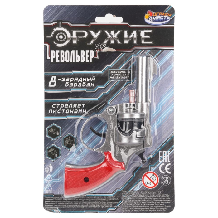 Револьвер для стрельбы пистонами 8 зарядов, блист.16,2*26,9*5см ИГРАЕМ ВМЕСТЕ в кор.2*144шт
