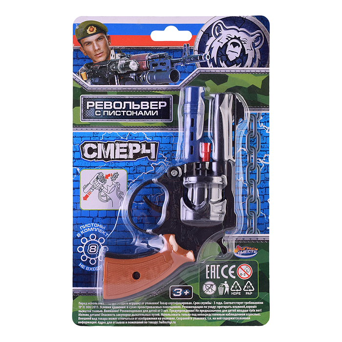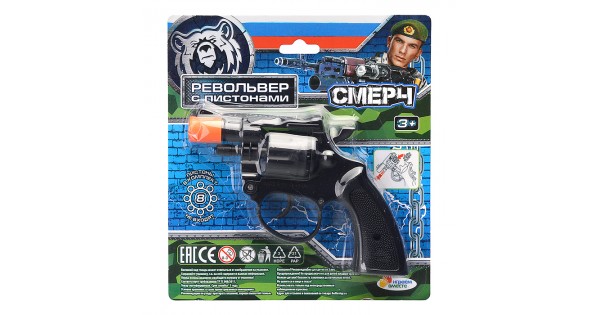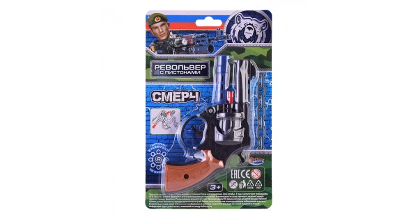 Револьвер для стрельбы пистонами 8 зарядов, пласт, блист.16,2*19,2*6см