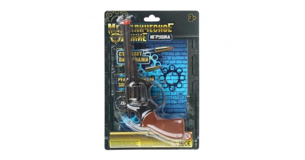 Револьвер для стрельбы пистонами 8 зарядов, металл, блист.16х21х5см