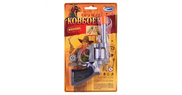Револьвер для стрельбы пистонами 8 зарядов, пласт, блистер 16*17*3см.