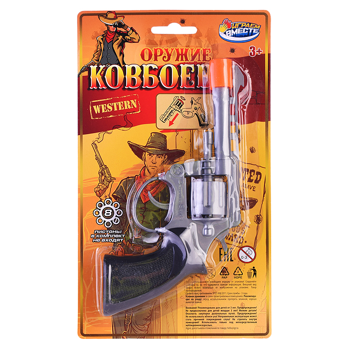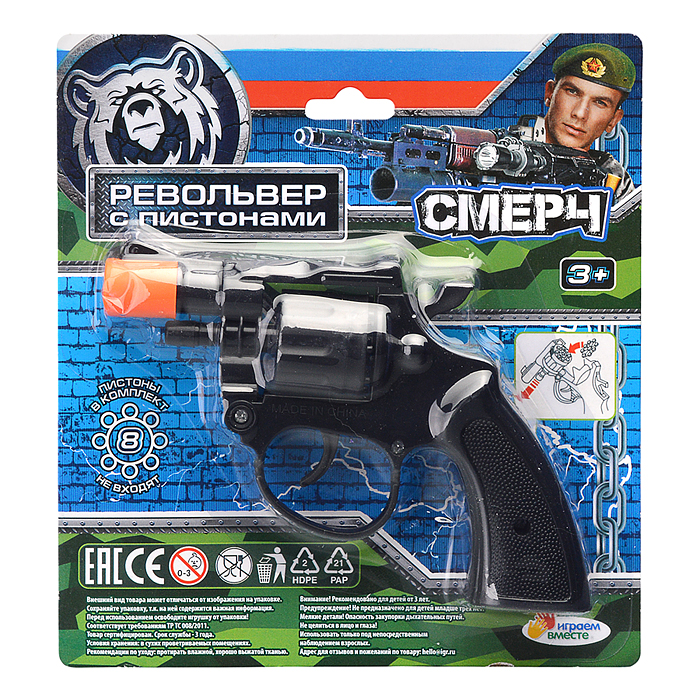 Револьвер для стрельбы пистонами 8 зарядов, пласт, блист.16,2*19,2*6см