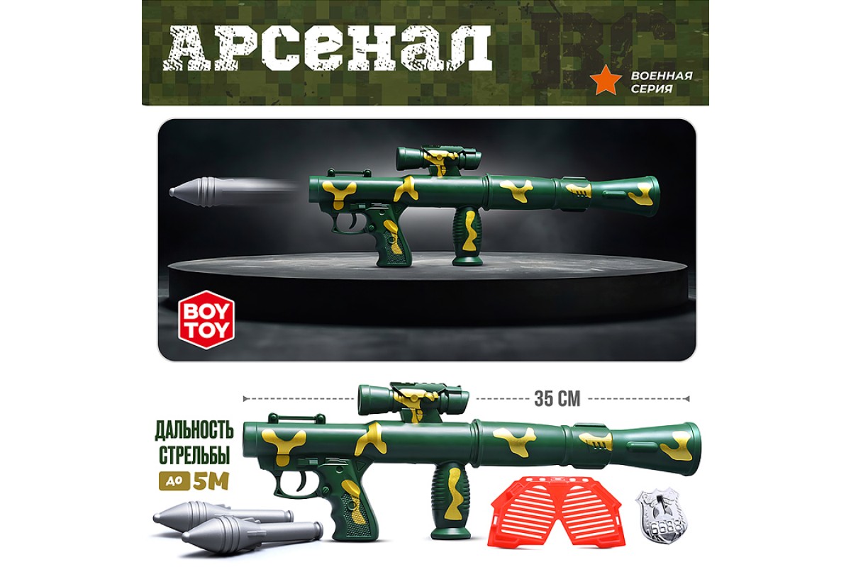 • В комплекте: 2 снаряда, защитные очки, полицейский жетон.