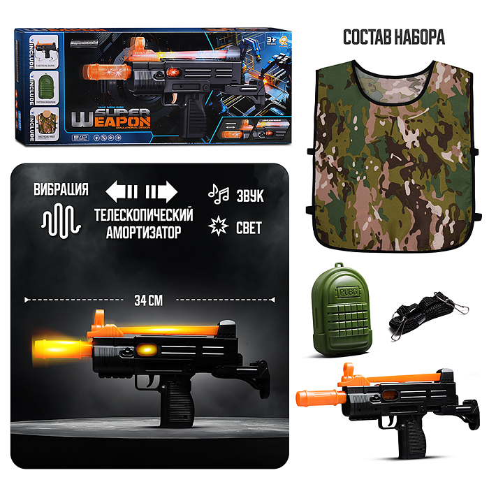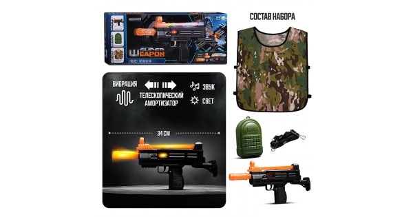 Автомат "Опасность" (с акустической и световой вибрацией + тактический жилет + стратегический пакет) в коробке