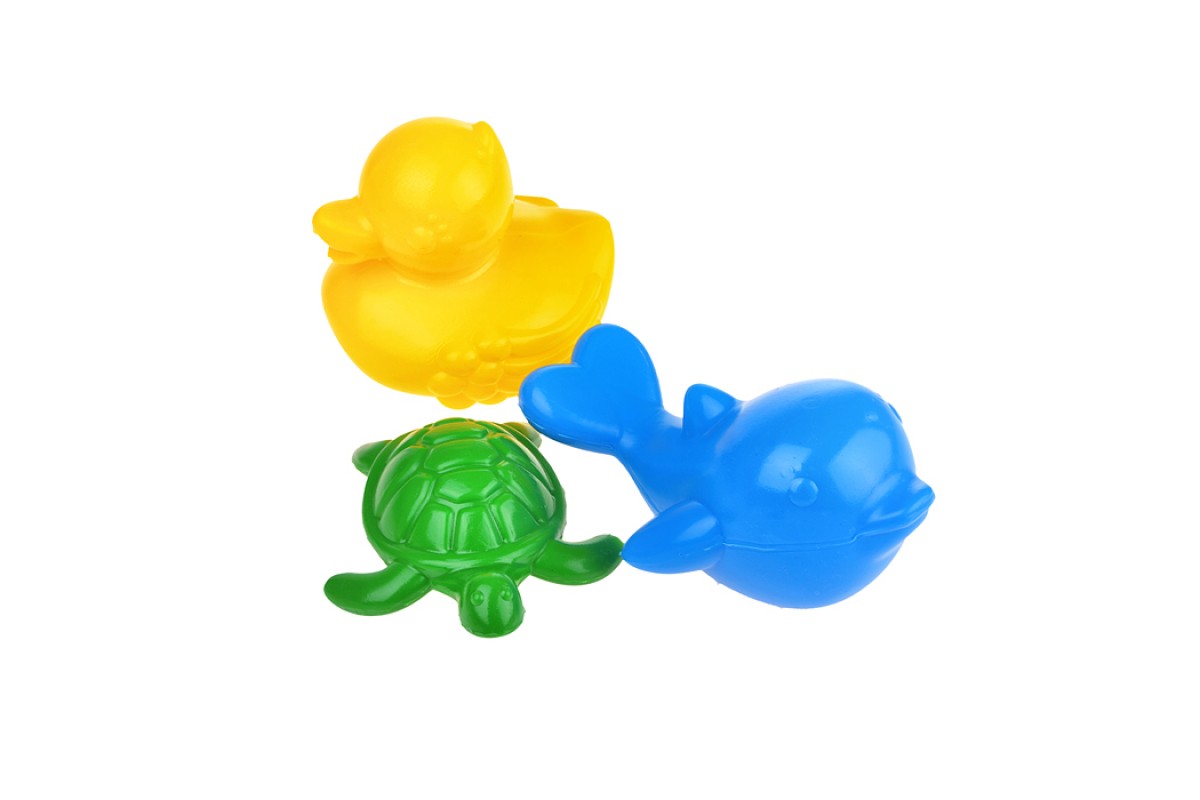 В набор входят 3 фигурки: дельфин (12 см.), черепаха (10 см.), уточка (10 см.)