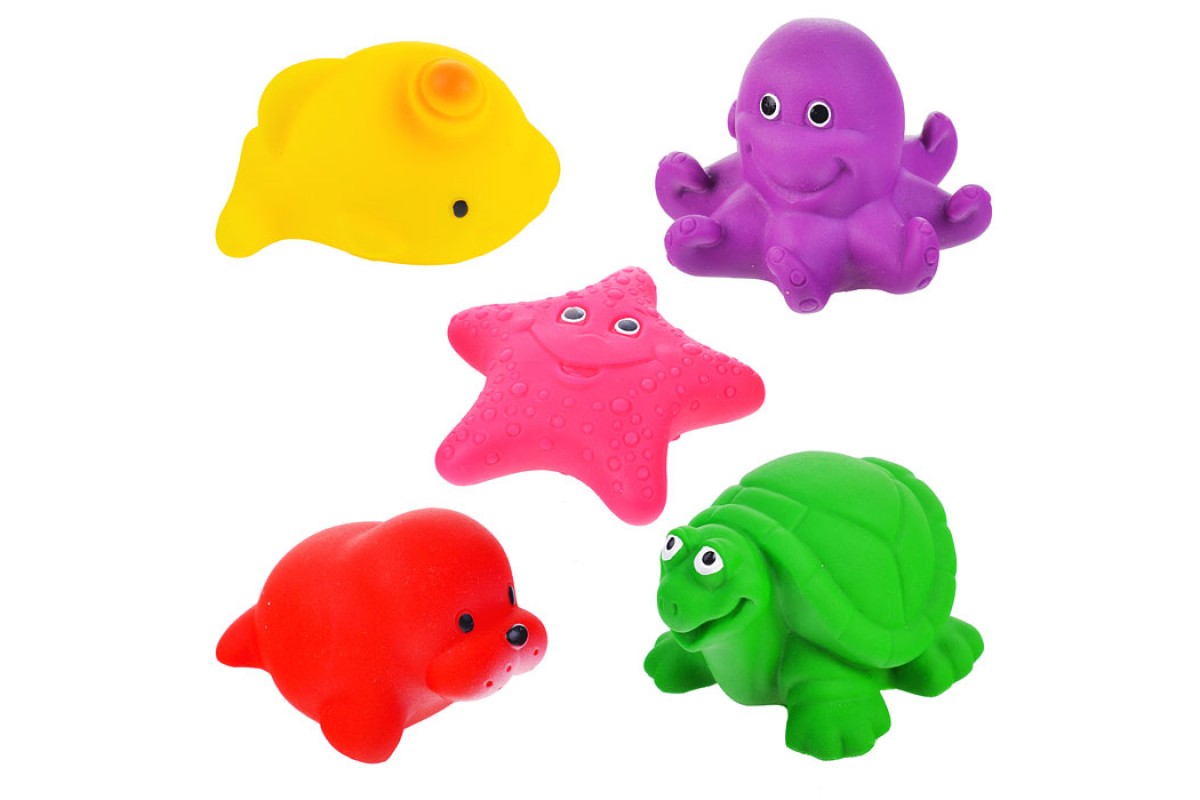 В наборе 5 ярких игрушек для купания. Размеры игрушек Черепаха - 90х50х45 мм., Осьминог - 74х70х50 мм., Морская звезда - 60х64х50 мм., Морж - 90х60х50 мм., Кит - 90х48х53 мм.