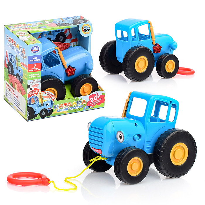 Каталка "Синий трактор" (20 песен, стихов, звуков, пластик, свет, бат.) в коробке