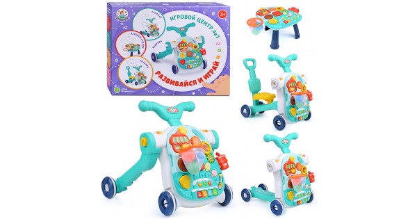 Игровой центр 4 в 1 (ходунки, каталка, самокат, игровой столик) в коробке