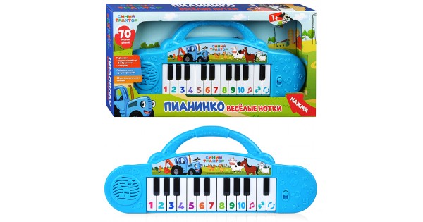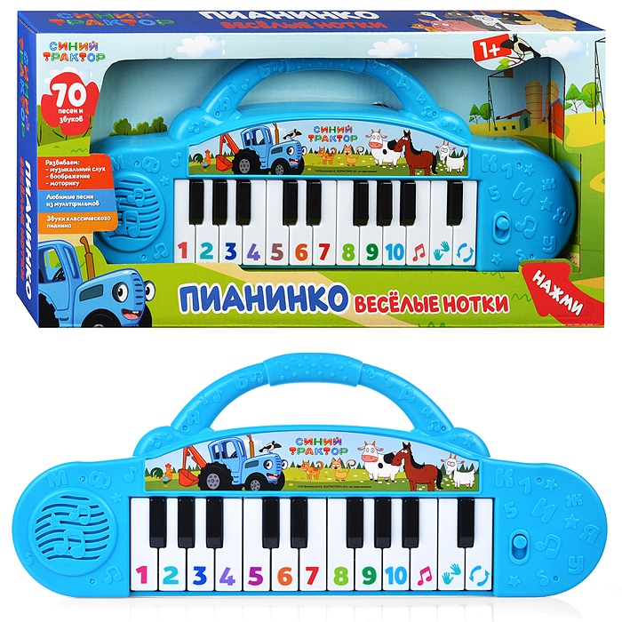 Пианинко веселые нотки "Синий трактор" 70 песен, звуков. удобная ручка.)