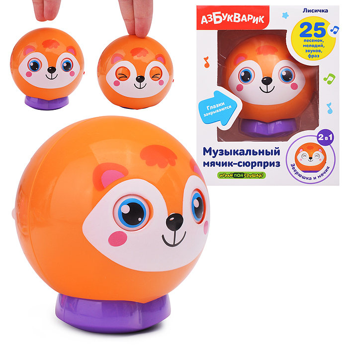 Музыкальная Лисичка "Ми-Ми-Мишки" (5 песен из м/ф, сказка "теремок",лапки-трещотки, свет)
