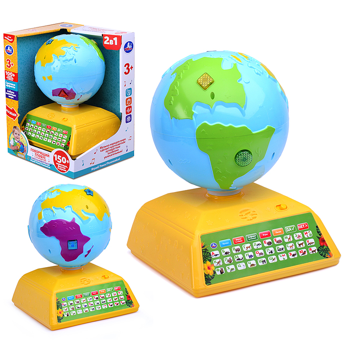 Говорящий глобус с планшетом "Азбука животных" (150 фактов, звуков, свет, на бат.) в коробке