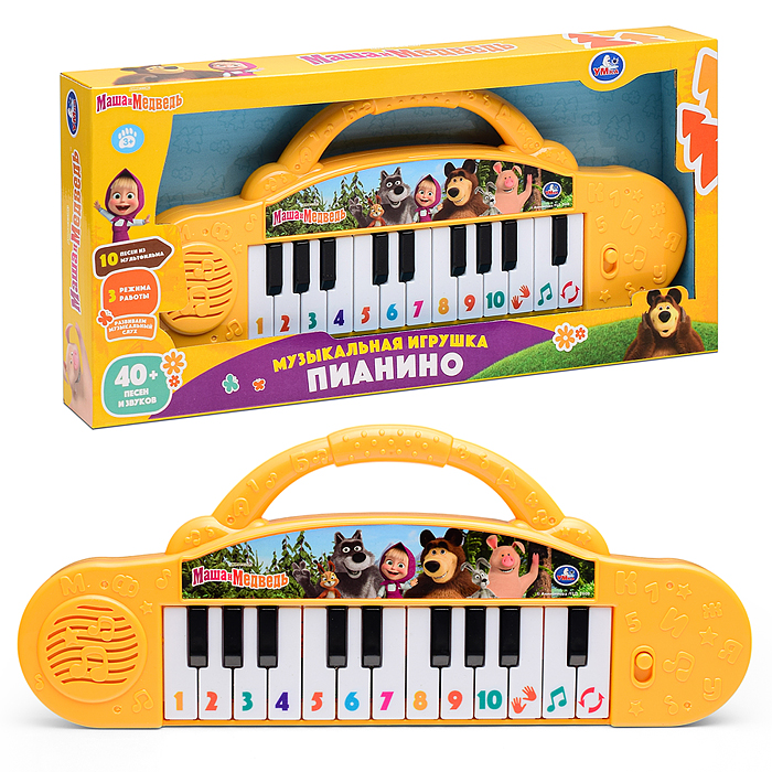 Пианино "Маша и Медведь" (40 песен, стихов и звуков, бат.) в коробке
