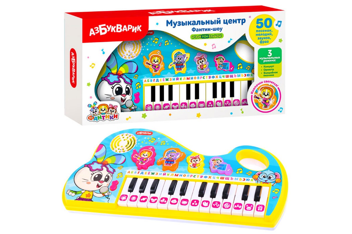 • А в режиме «Волшебное пианино» каждый ребенок сможет сам сыграть 5 известных мелодий («Собачий вальс», «Как у наших у ворот», «Каравай», «Два весёлых гуся», «Серенький козлик»).