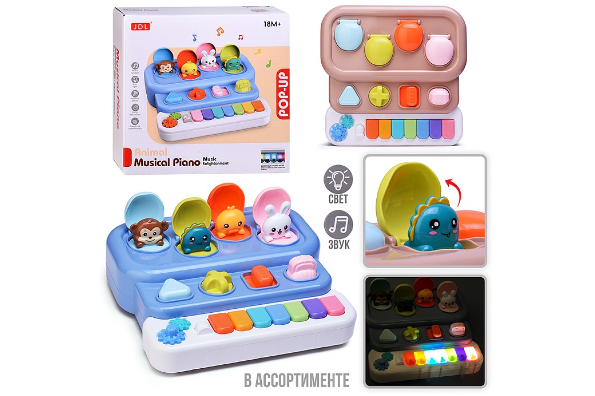 - 4 рычажка при нажатии на которые, из окошек выпрыгивают фигурки животных