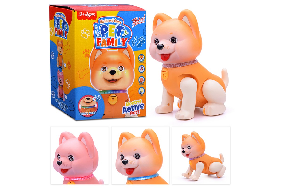 Умеет: двигать глазками, двигаться, светится, играет музыка