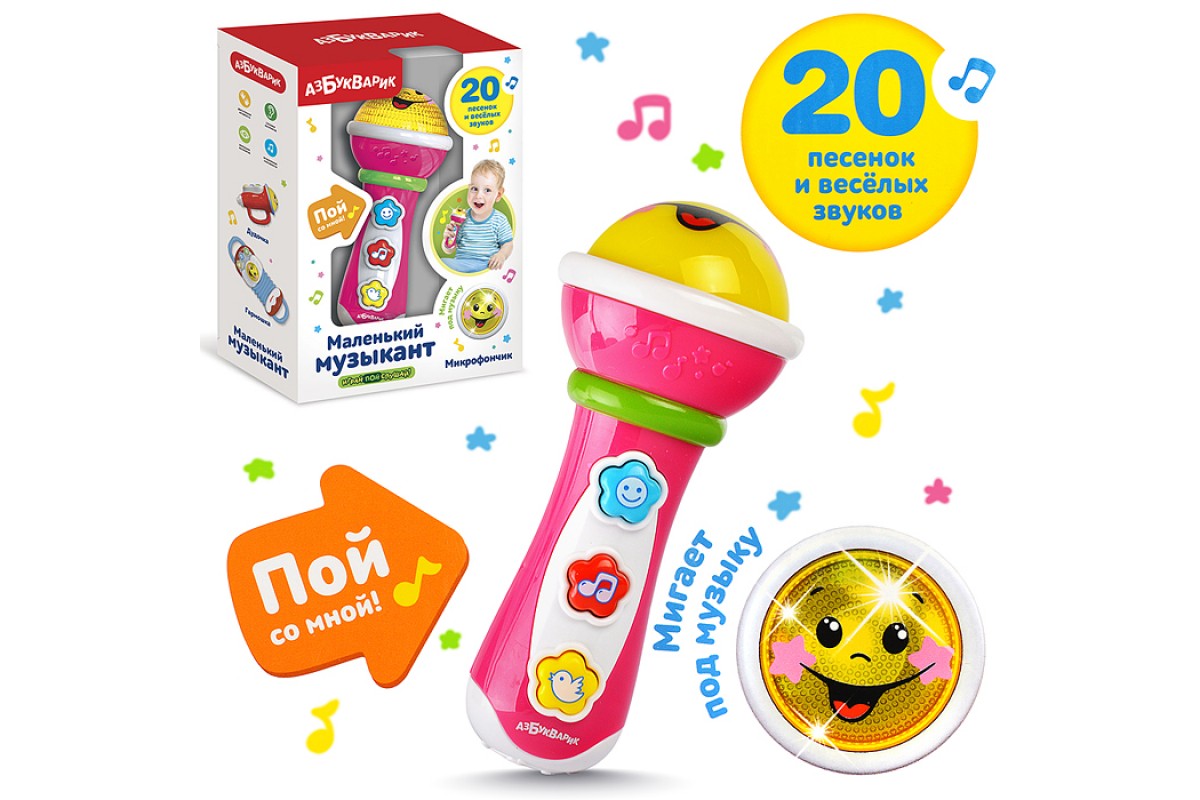 Яркий игрушечный микрофончик подарит малышу отличное настроение и поможет ему раскрыть музыкальный талант!