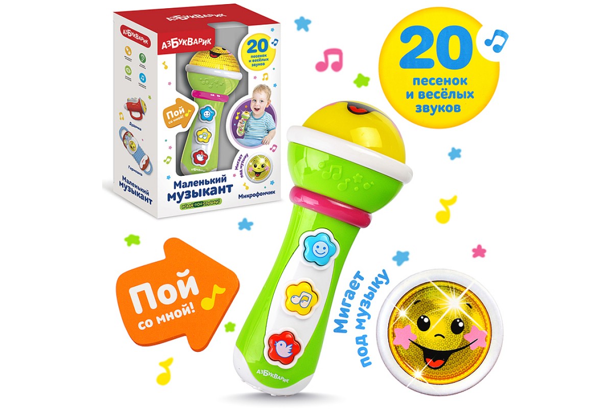 Яркий игрушечный микрофончик подарит малышу отличное настроение и поможет ему раскрыть музыкальный талант!