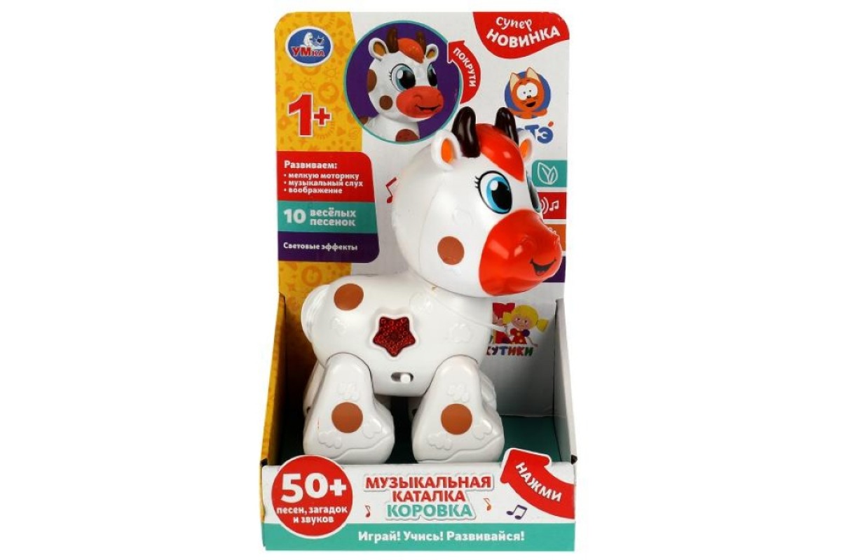 Музыкальная каталка коровка "Коте ТВ" 50 песен, загадок, звуков. свет.