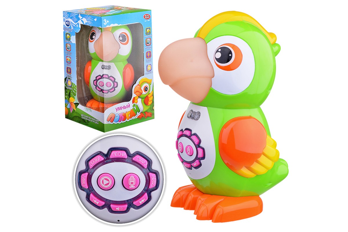 Обучающий попугай сенсорный, на батарейках, в коробке