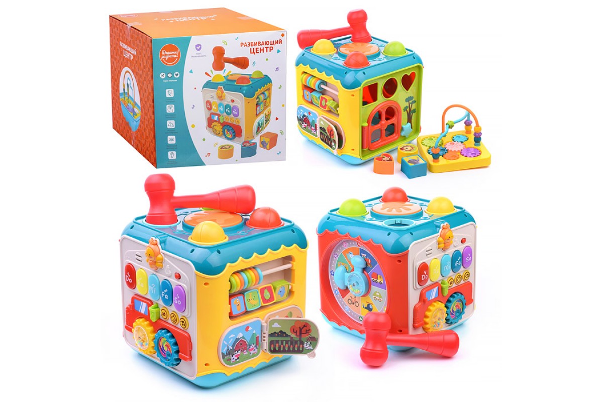 • В комплекте: молоток, 3 шарика с гремящими гранулами, 3 кубика разномй формы.